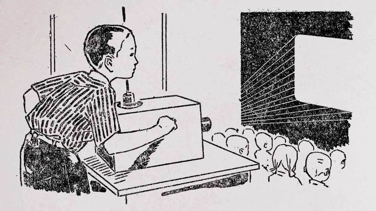 首先和大家介紹幻燈簡報電影的相關緣起。這與「幻燈事件」有關。幻燈事件是關於清末背負東亞病夫形象的年輕人魯迅,一個來自以身體為醫學對象的文明,前往轉向西方以細菌為醫學對象的日本學習,他在日本仙台醫學專科的課堂見識到幻燈的歧異因而棄醫從文。於現代,看到就是知道或是知識的前提條件,所以現代教育非常重視實物、標本、圖像等等教學的教材輔具,幻燈作為時髦視覺新手段就常見於理科課程。醫學課講述微生物與健康、疾病死亡之間的關聯能在顯微鏡下一目瞭然,光學所見即是現代性的表徵。當年某日,細菌講義告一段落,幻燈機正放映一些風景時事,正值日俄戰爭期間,魯迅在播放光影間看到他久違的同胞,同時讓他感到震驚!因為幻燈所顯示的內容是關於一名做了俄軍偵查的中國人遭日軍逮補將要被砍頭示眾的現場。魯迅體悟到,藉醫學改善愚弱同胞的身體不如改造他們的精神以文藝。視覺的震驚所引發地自我困境的意識與覺醒,不但改變了魯迅畢生將文學實踐視為國民精神病態批判與文化革命,更預示中國的歷史進程與今天。